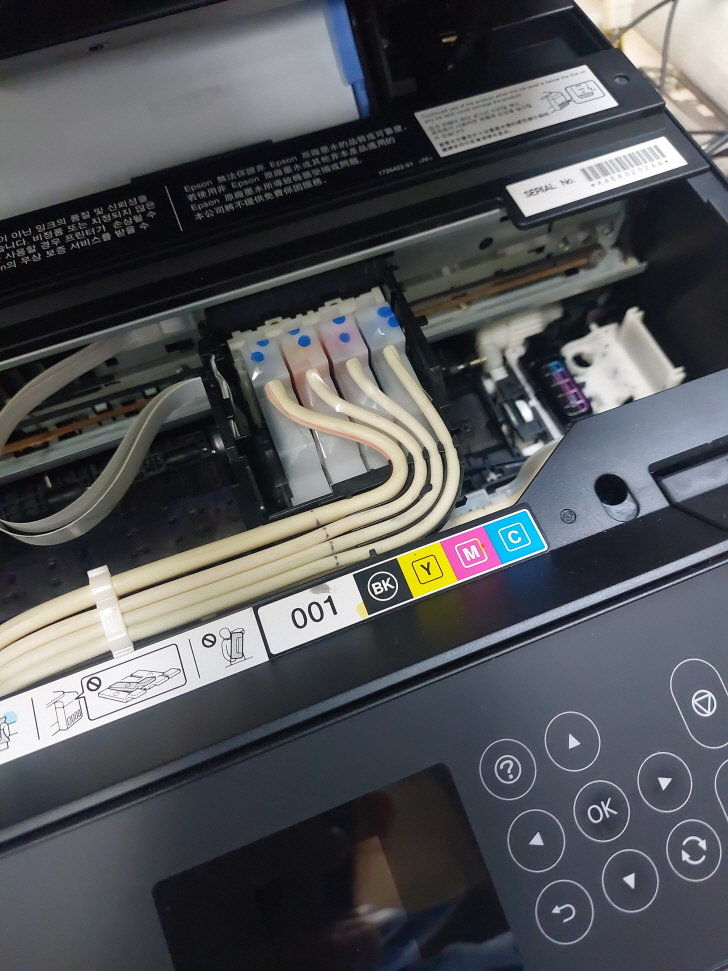 최근 Epson L4160 프린터에서 노란색이 전혀 출력되지 않는 문제가 발생했습니다. 헤드 청소 및 강력 클리닝을 여러 번 해도 해결이 안 되어, 결국 헤드를 직접 분해해서 수동으로 청소 작업을 진행했습니다.