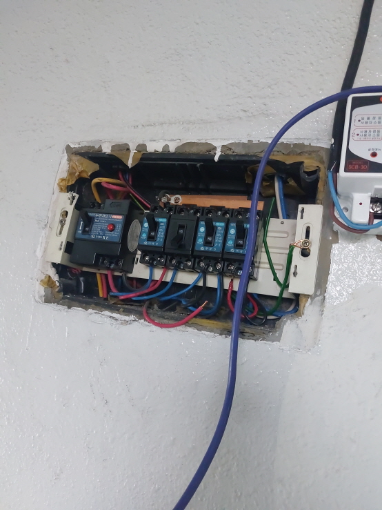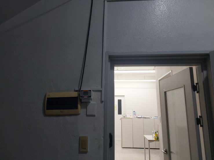 차단기 박스를 열어 전원선을 연결하고, 카메라 전용 아답터를 사용했습니다.