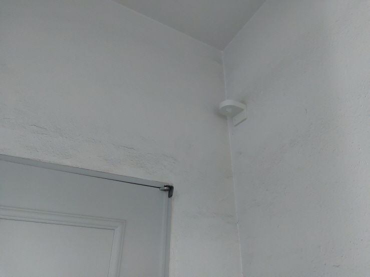 출입문과 사각지대를 모두 커버할 수 있도록 천장 모서리 위치에 설치했습니다.