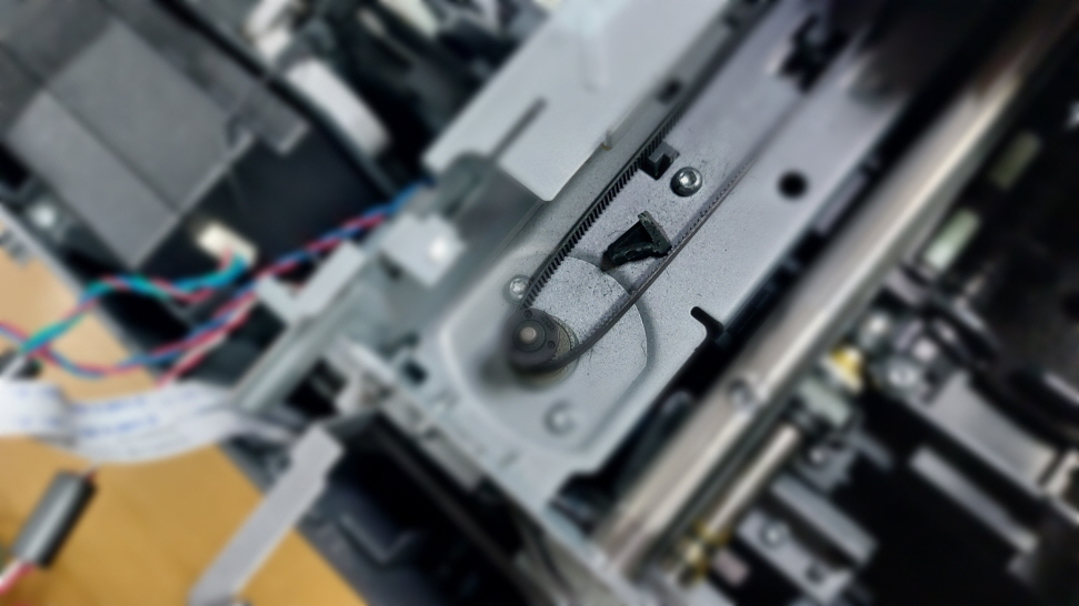 - 내부 확인 시, 헤드 이동을 잡아주는 벨트 고정 부품(브래킷) 파손