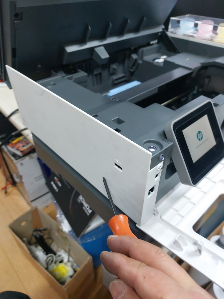 프린터를 오래 사용하다 보면 가장 흔히 발생하는 문제 중 하나가 바로 캐리지(헤드) 걸림 오류입니다. 오늘은 HP 9010 시리즈에서 자주 발생하는 이 문제를 직접 수리한 과정을 공유합니다.